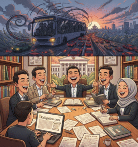 Perjalanan pulang adalah repetisi dari perjuangan pagi. Jakarta di malam hari adalah lautan cahaya merah dari lampu rem kendaraan yang terjebak macet. Menatap ke arah Istana yang megah yang kini bermandikan lampu hias, ada kebanggaan tersendiri. Kembali ke arah Cileungsi, melalui jalanan yang mulai sepi, bayangan canda tawa di warteg dan tajamnya argumen di ruang rapat menjadi bahan bakar jiwa untuk menghadapi esok. Sebab di Kaligis & Associates, kami bukan sekadar rekan kerja; kami adalah satu keluarga yang siap menantang dunia hukum dengan ilmu, integritas, dan tawa.